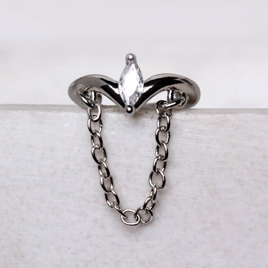 316L Stainless Steel Jeweled Tiara with Chain Clicker Ring
