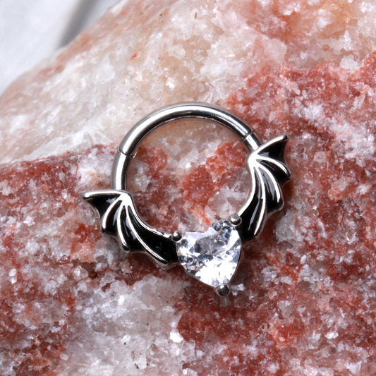 316L Stainless Steel Heart CZ Bat Clicker Ring