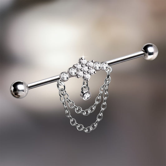 316L Stainless Steel Double Chained Jeweled Tiara Industrial Barbell