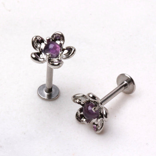 316L Stainless Steel Fluorite Stone Flower Labret
