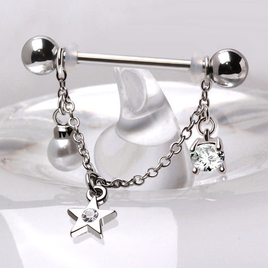 316L Stainless Steel Chained Sun, Moon & Star Nipple Shield