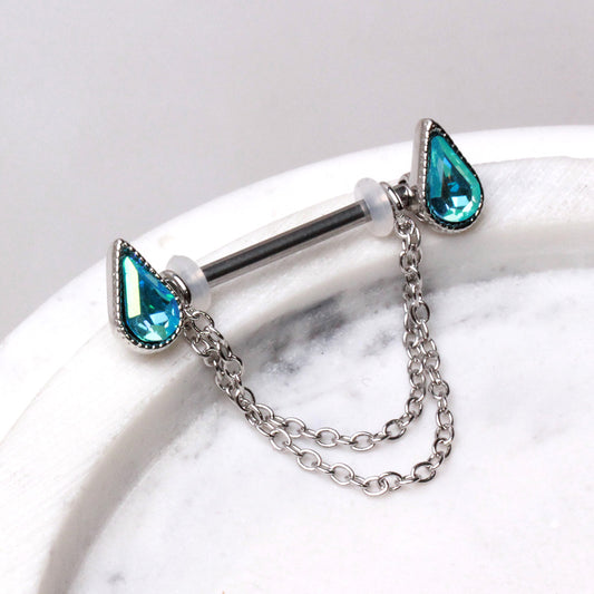 316L Stainless Steel Double Chained Water Drop Nipple Shield