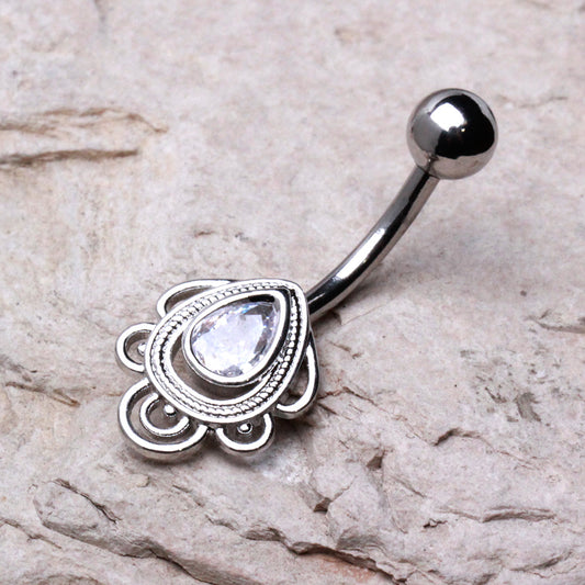 316L Stainless Steel Ornate Tear Drop Navel Ring