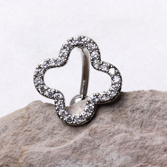316L Stainless Steel Glittering Clover Top Down Navel Ring