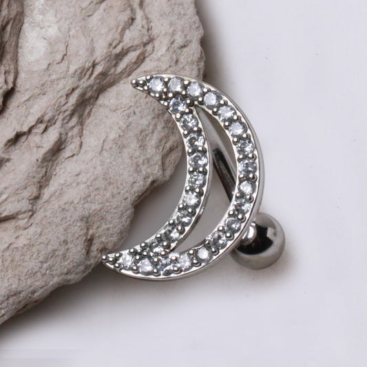 316L Stainless Steel Glittering Crescent Moon Top Down Navel Ring