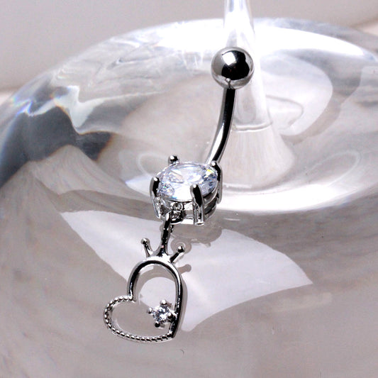 316L Stainless Steel Crowned Heart Dangle Navel Ring