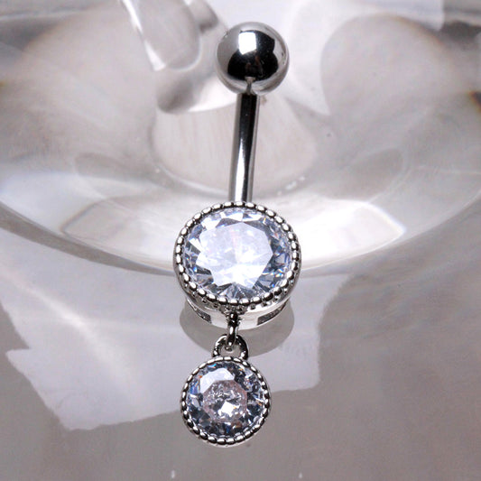 316L Stainless Steel Elegant Double CZ Dangle Navel Ring