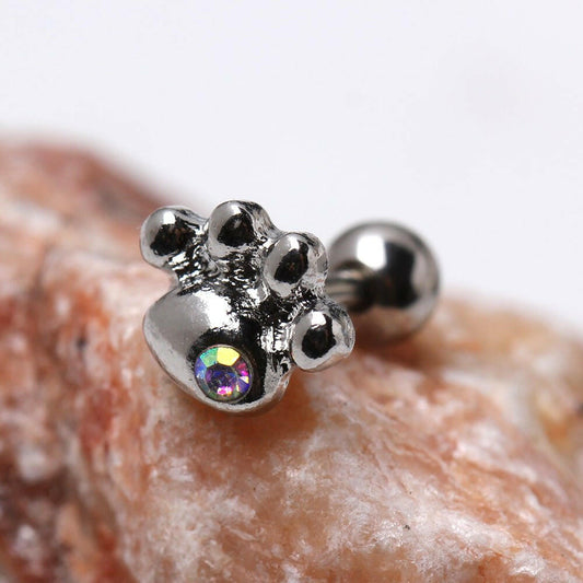 Aurora Borealis Dog Paw Cartilage Earring in 316L Stainless Steel