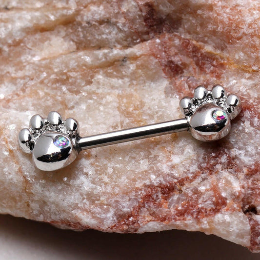Aurora Borealis Dog Paw Nipple Bars in 316L Stainless Steel