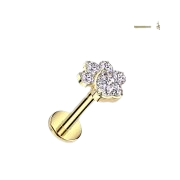 Implant Grade Titanium Internally Threaded L Bent Christina Piercing With CZ Flower Top and Pressed Fit Gem End