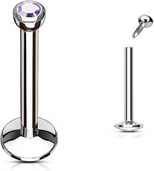 Press Fit Gem Set Ball Internally Threaded 316L Surgical Steel Labret, Flat Back Studs
