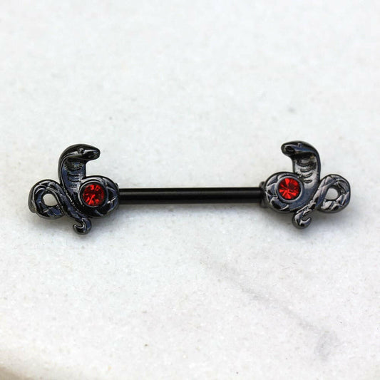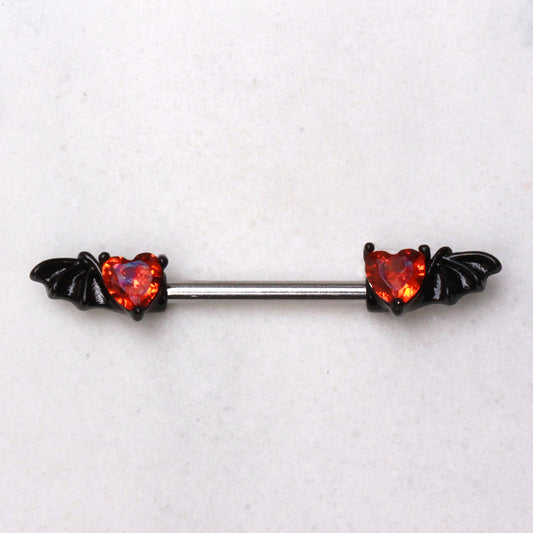 Black PVD Plated Red Heart Bat Wing Nipple Bar