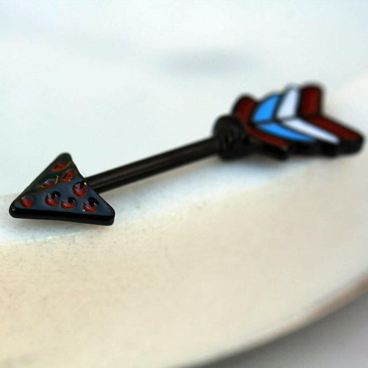 Black PVD Plated Colorful Feather Arrow Nipple Bar
