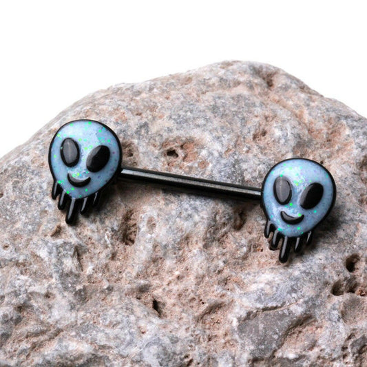 Black PVD Plated Alien Skull and Stars Dangle Navel Ring