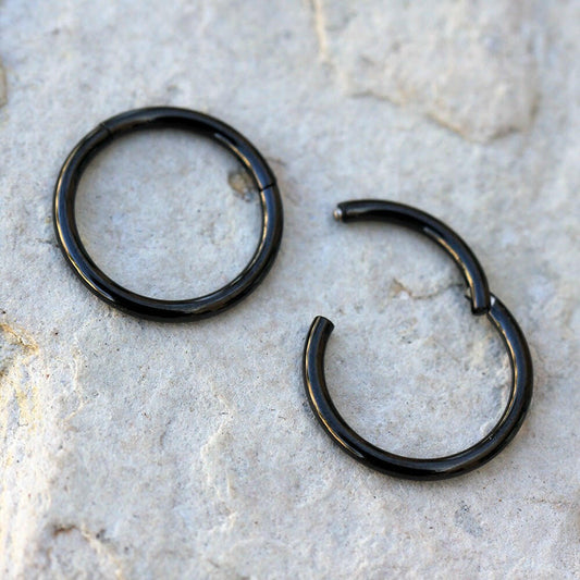 Black Pyramid Front Stamped Steel Seamless Hinged Clicker Ring