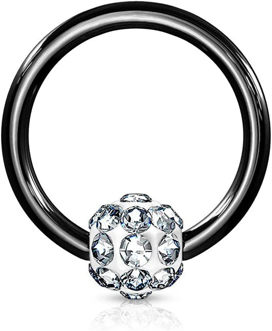 Surgical Steel Crystal Paved Ferido Ball Captive Bead Ring