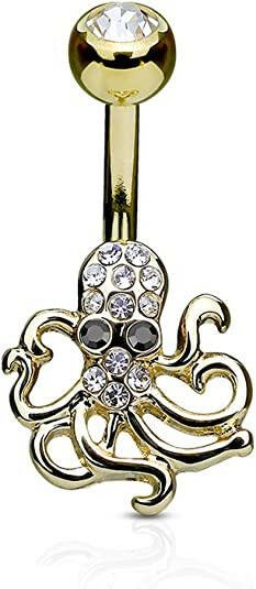 Surgical Steel Crystal Paved Octopus Belly Navel Ring
