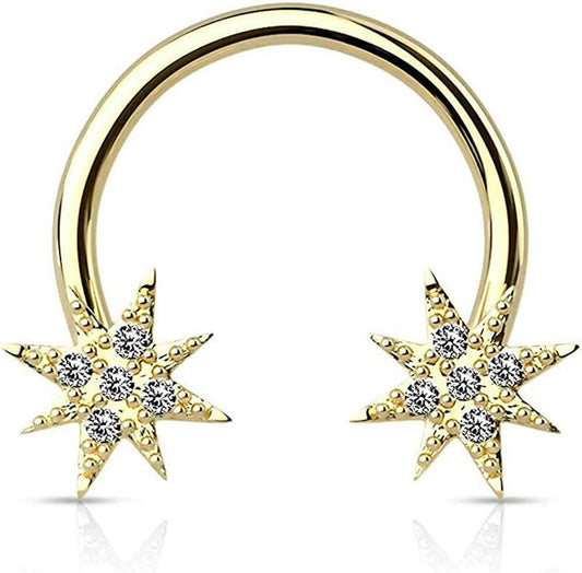 Surgical Steel Crystal Paved Starburst Ends Circular Barbell Horseshoe