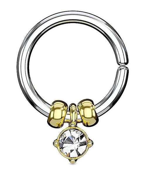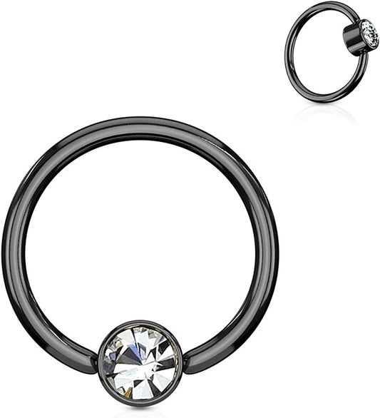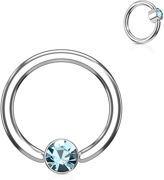 Surgical Steel Crystal Round Flat Cylinder Captive Hoop Rings
