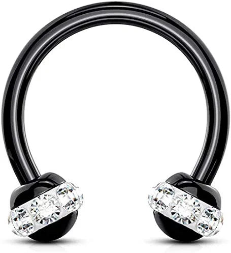 Surgical Steel Crystals Paved Around ball Black PVD Over Horseshoes for Ear Cartilage Daith Eyebrow Nose Septum