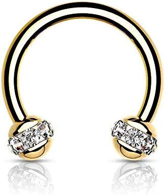 Surgical Steel Crystals Paved Around ball Gold PVD Over Horseshoes for Cartilage Daith Eyebrow Nose Septum