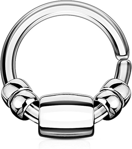 Surgical Steel Cut Ring with Removable Steel Cylinder and Beads Annealed Bendable Nose Septum and Ear Cartilage Hoops