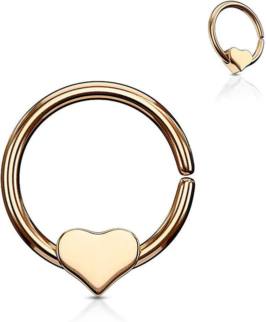 Surgical Steel Cut Ring with Removable Steel heart Annealed Bendable Nose Septum and Ear Cartilage Hoops