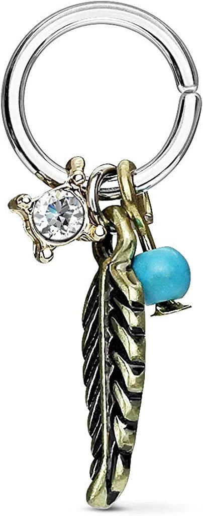 Surgical Steel Cut Ring with Removable Tribal Dangles Annealed Bendable Nose Septum and Ear Cartilage Hoops