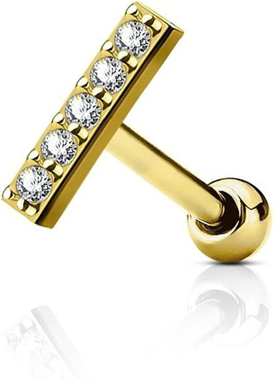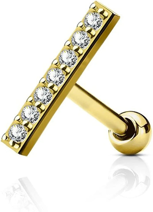 Surgical Steel CZ 12mm Lined Long Bar Top Cartilage Tragus Barbell Studs