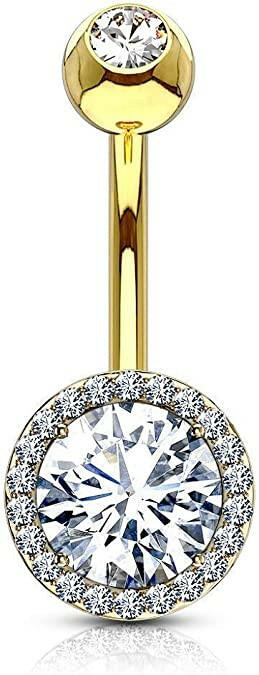 Surgical Steel CZ Around Round Prong CZ Center Double Tier Belly Navel Ring