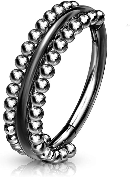 Surgical Steel Double-Sided Milgrain Beads Hinged Segment Hoop Ring
