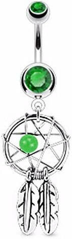 Surgical Steel Dream Catcher Woven Star Design with Bead and Feathers Fancy Belly Navel Ring