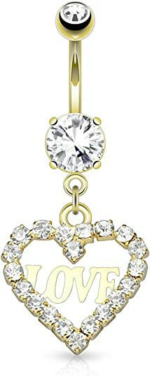 Surgical Steel Dynamique Crystal Paved Hollow Heart Dangle Belly Navel Ring