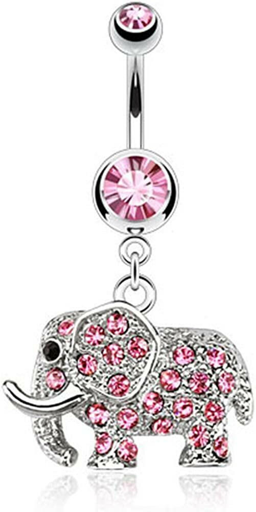 Surgical Steel Elephant Multi Paved CZs Dangle Belly Navel Ring