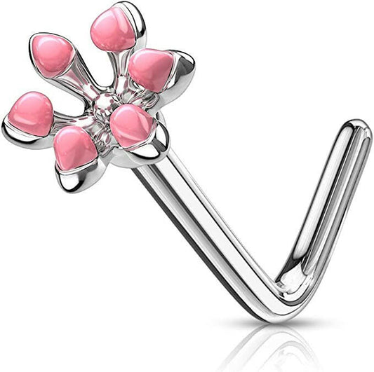 Surgical Steel Enamel Flower Top L Bend Nose Rings
