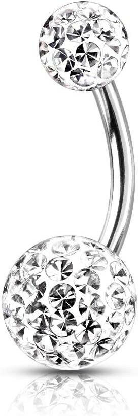 Surgical Steel Epoxy Covered Crystal Paved Balls Belly Navel Ring