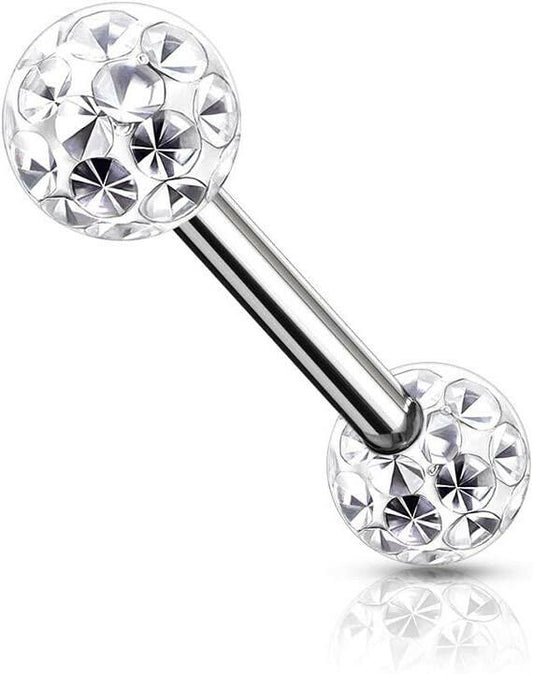 Surgical Steel Epoxy Covered Crystal Paved Balls Nipple Barbell Rings