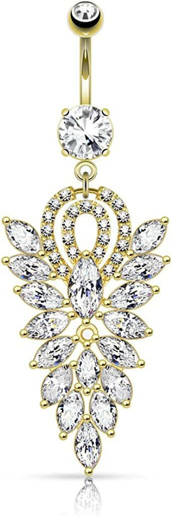 Surgical Steel Fancy Chandelier CZ Cluster Dangle Belly Navel Ring