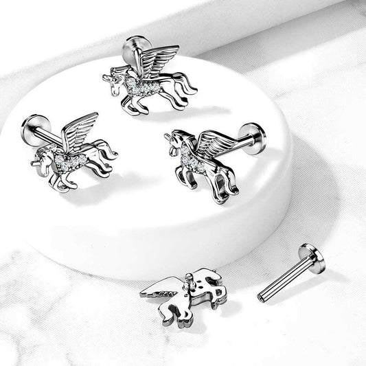 Surgical Steel Internally Threaded CZ Paved Unicorn on Flat Back Stud for Labret Monroe Cartilage