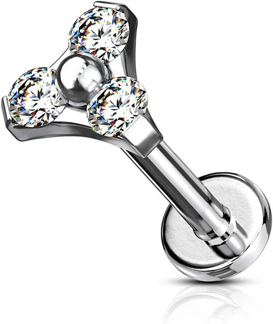 Surgical Steel Internally Threaded CZ Triangle Flat Back Studs