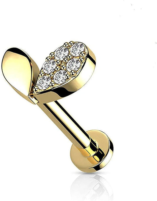 Surgical Steel Internally Threaded Micro CZ Paved Leaf Top on Flat Back Stud for Labret Monroe Cartilage