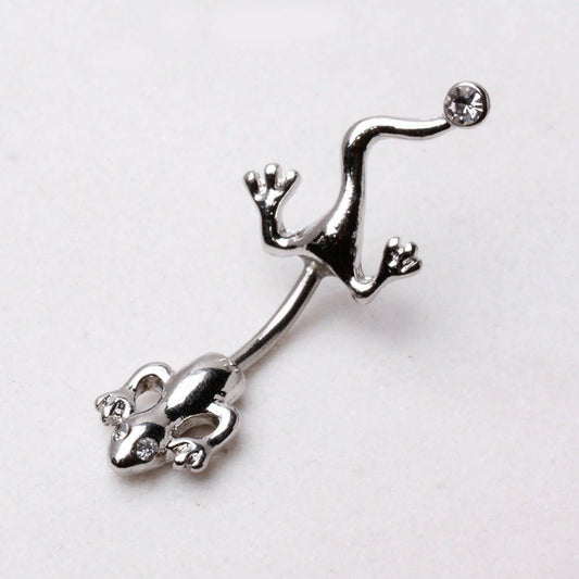 Surgical Steel Lizard Navel Ring with Clear CZ on Tail