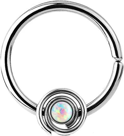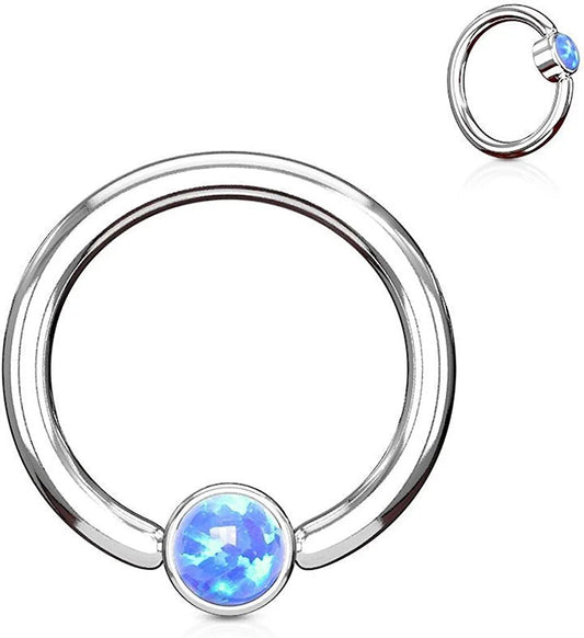 Surgical Steel Opal Round Flat Cylinder Captive Hoop Rings