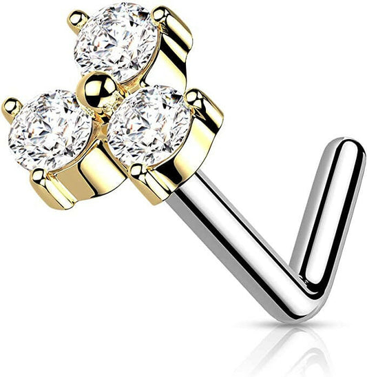 Surgical Steel Opalite Crystal Stone Triangle L Shaped Nose Ring