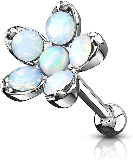 Surgical Steel Opalite Flower with Opal Center Top Cartilage Tragus Barbell Studs