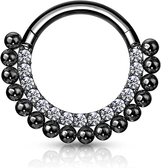 Surgical Steel Paved CZ and Balls Hinged Segment Hoop Ring