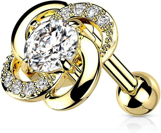 Surgical Steel Paved CZ Flower with CZ Center Cartilage Tragus Barbell Studs