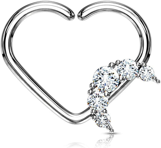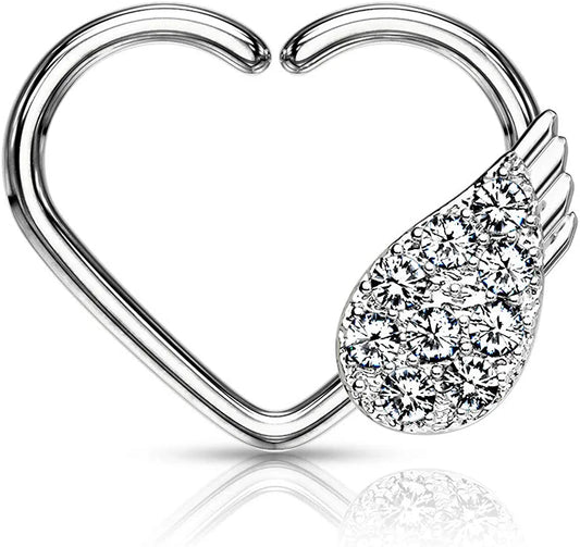 Brass CZ Paved Angel Wing Heart Shape Ear Cartilage Daith Hoop Rings