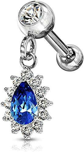Surgical Steel Pear CZ with Round CZ Surrounding Dangle Jeweled Ball Cartilage Tragus Barbell Studs