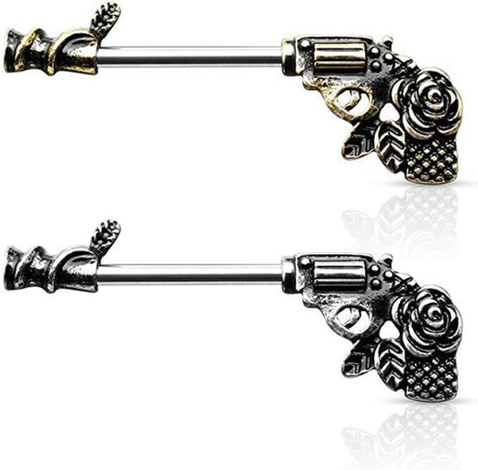 Surgical Steel Rose Pistol Nipple Barbell Rings